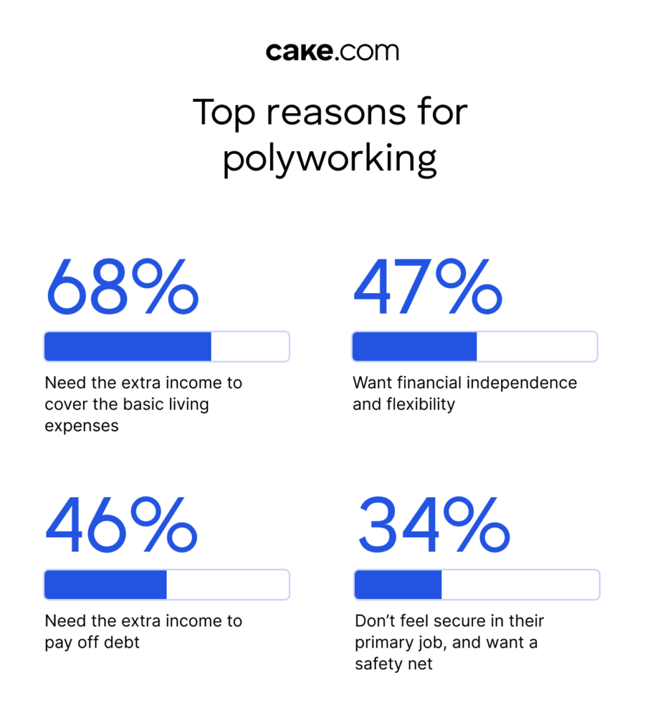 The Monster’s Polyworking survey from 2025 reveals that almost half of the US survey respondents (47%) engage in polyworking — having 2 or more jobs, projects, or gigs.