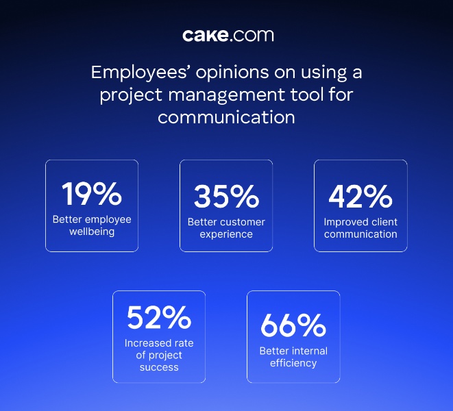76% of employees who use a project management tool to communicate with their team say it improves their internal communication, as stated in the Project.co’s above-mentioned research.