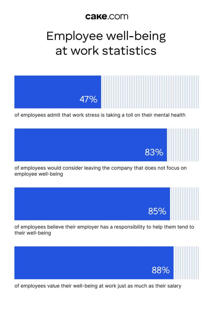 - 83% of employees would consider leaving the company that does not focus on employee well-being.